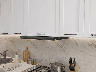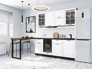 Главный плюс: много шкафчиков.  Выбрали вариант сандал белый. И не прогадали. Смотрится великолепное. Жаль, что двери идут без доводчиков.