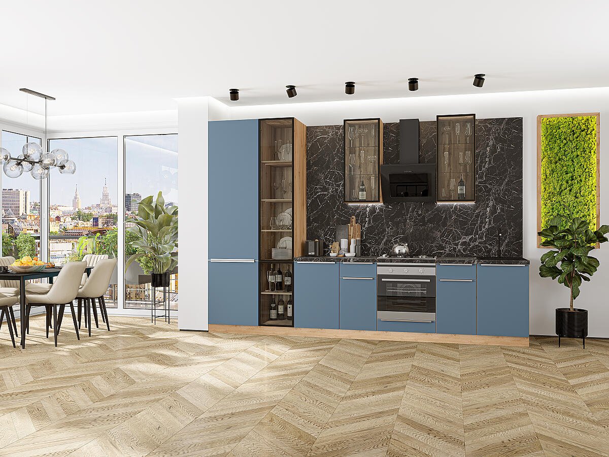 Фьюжн-08 (2340х3400х600) Белый/Silky Blue исполняется в классическом стиле и спокойных цветах. Модель сочетает в себе простоту и функциональность, но при этом не выглядит громоздко. Она гармонично впишется в пространство, не утяжеляя его.