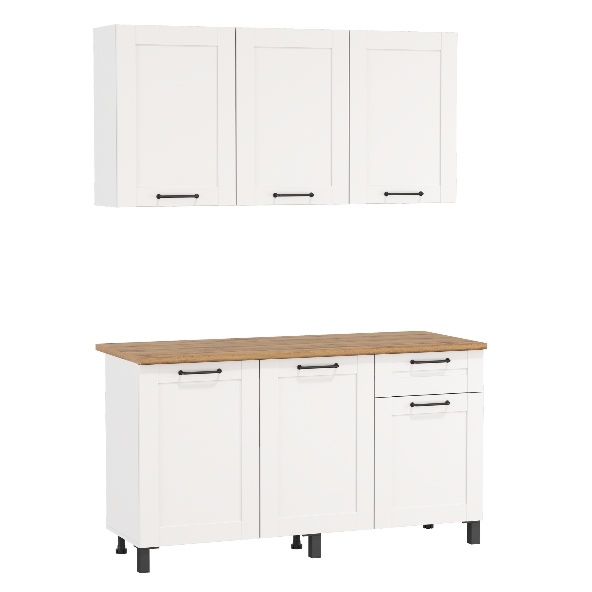 Кухня Аризона (1500) (белый / столешница: дуб вотан / ДВПО: белый / профиль: ПВХ белый О) исполняется в классическом стиле и спокойных цветах. Модель сочетает в себе простоту и функциональность, но при этом не выглядит громоздко. Она гармонично впишется в пространство, не утяжеляя его.